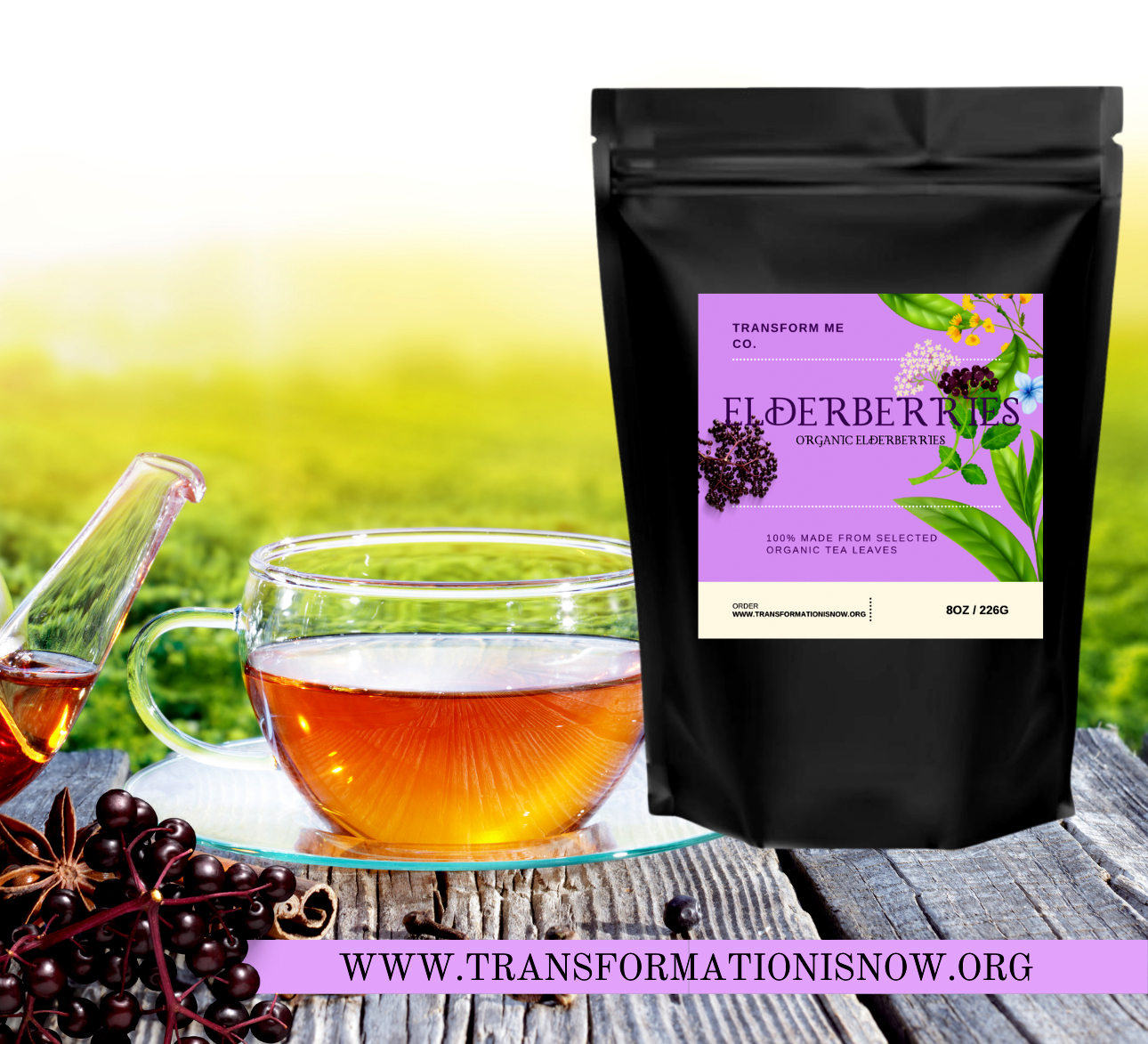 Elevate your tea time with Elderberries Tea, the delicious way to nurture your body and soul.
